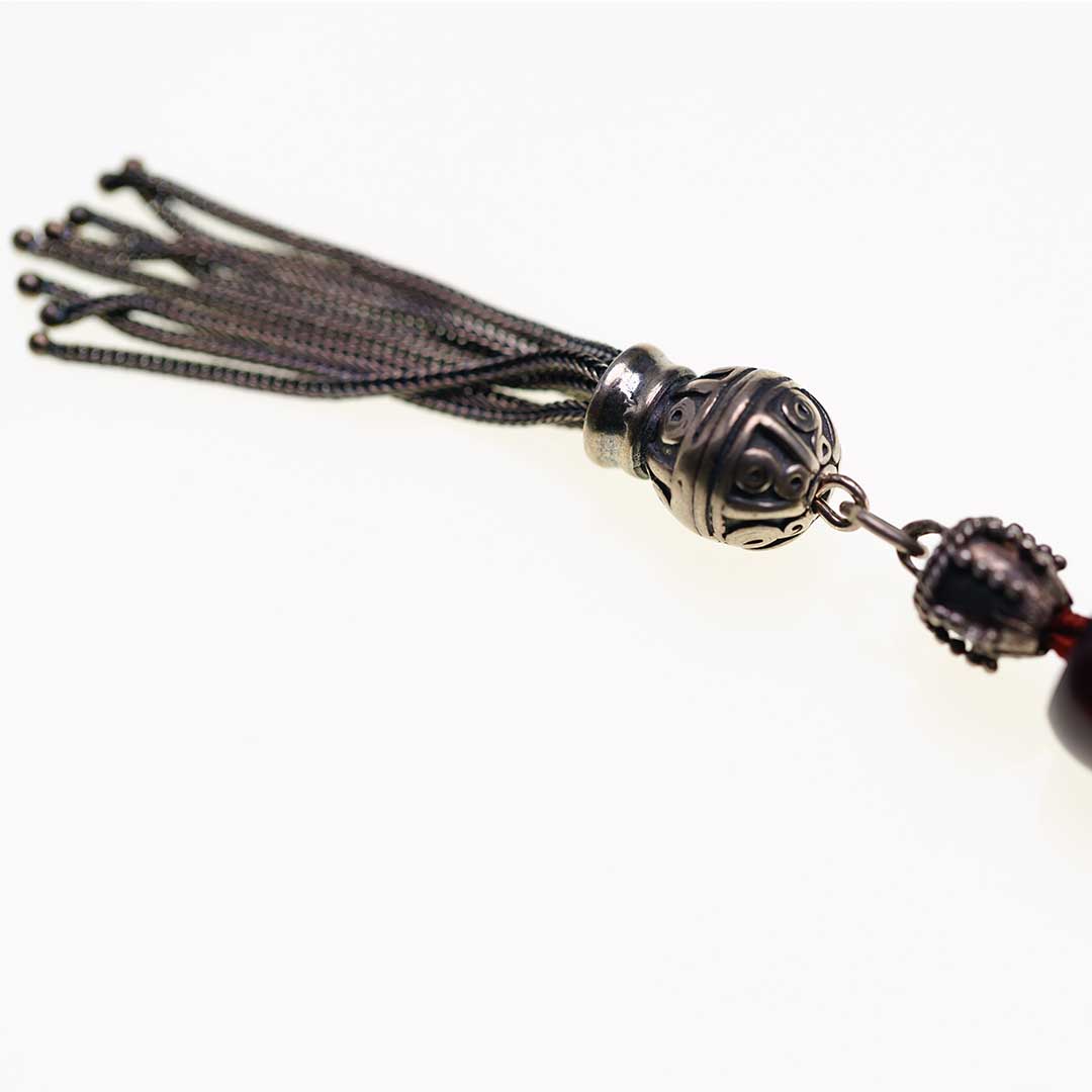 Handmade Worry Beads from Authentic Faturan with Old Beads and Silver Τassel 33 beads 26cm
